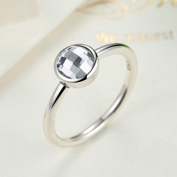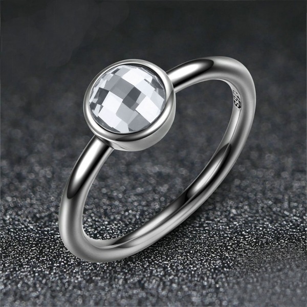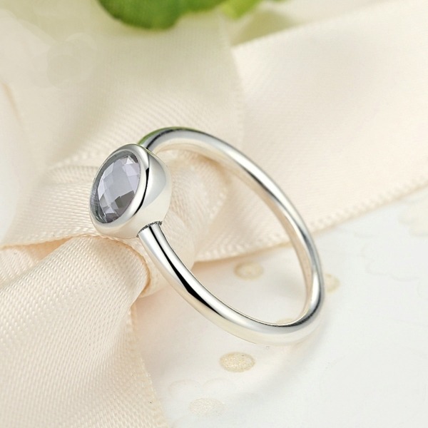 Precioso anillo con circonita facetada redonda de color GRIS LUZ DE LUNA elaborado en plata de ley.