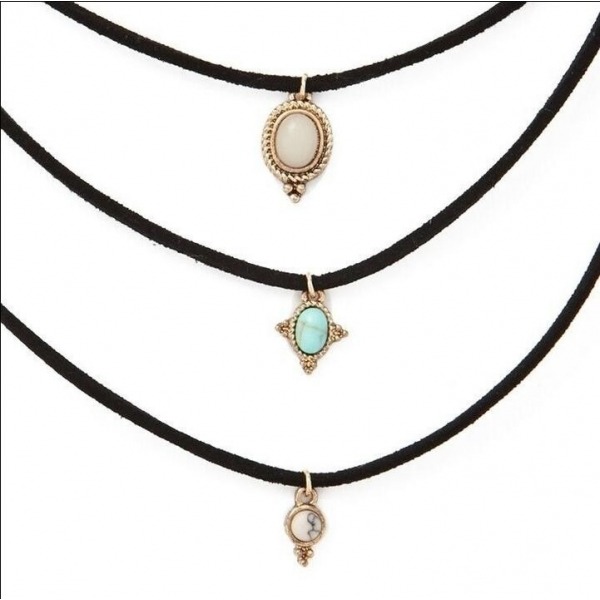 SET 3 CHOKERS TURQUESA CUARZO ROSA Y PIEDRA DE LUNA