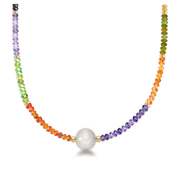 COLLAR CHOCKER GARGANTILLA CRISTALES DE COLORES Y PERLA