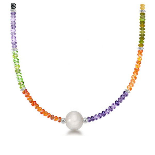 Nuevo collar-gargantilla tipo chocker de auténticos cristales de colores de la firma austríaca Swarovski. Un precioso collar colorido muy juvenil y favorecedor. Lleva en el centro una hermosa Perla Natural Blanca. Colores de los cristales: Morado-Amatista, Amarillo Suave-Citrino, Verde Manzana-Peridoto, Naranja-Ámbar, Negro-Espinelas, Blanco-Nácar...