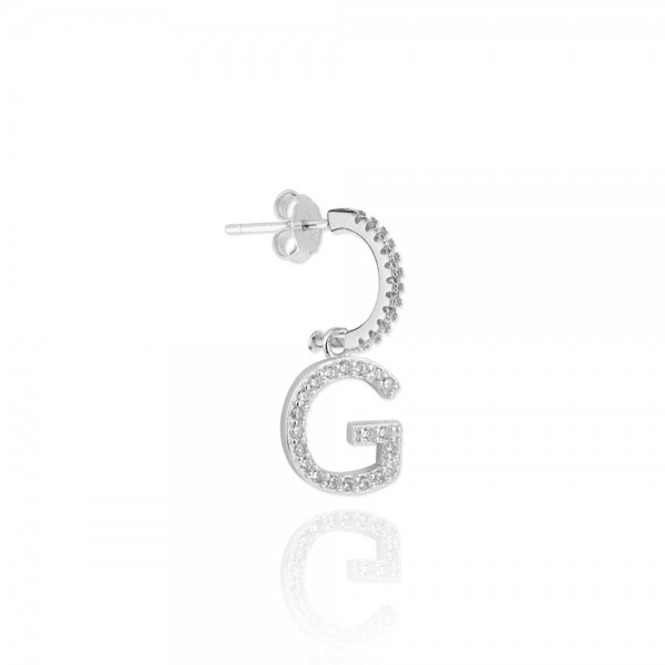 Pendientes de Aro con circonitas del que pende una preciosa letra inicial G también cuajada de circonitas. Son los pendientes de moda y los más vendidos en nuestra tienda esta temporada.